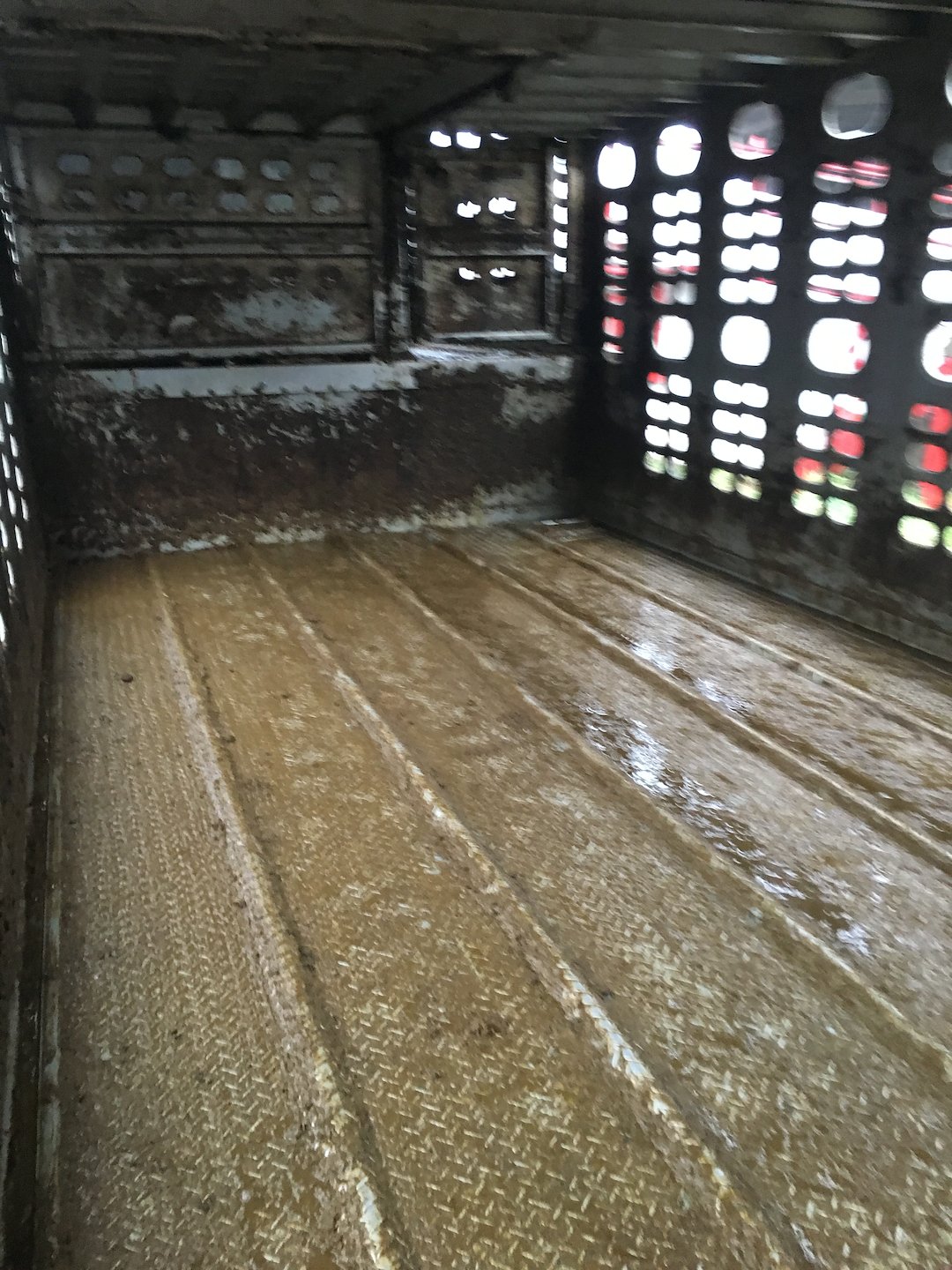For this project we performed a hot water pressure wash of the interior of the cattle trailer. The work focused on removing organic build-up and general grime that accumulates during livestock transport. Using hot water pressure washing helps loosen and wash away dirt, manure, and other residues so the trailer interior is clean before any sanitizing steps are taken.